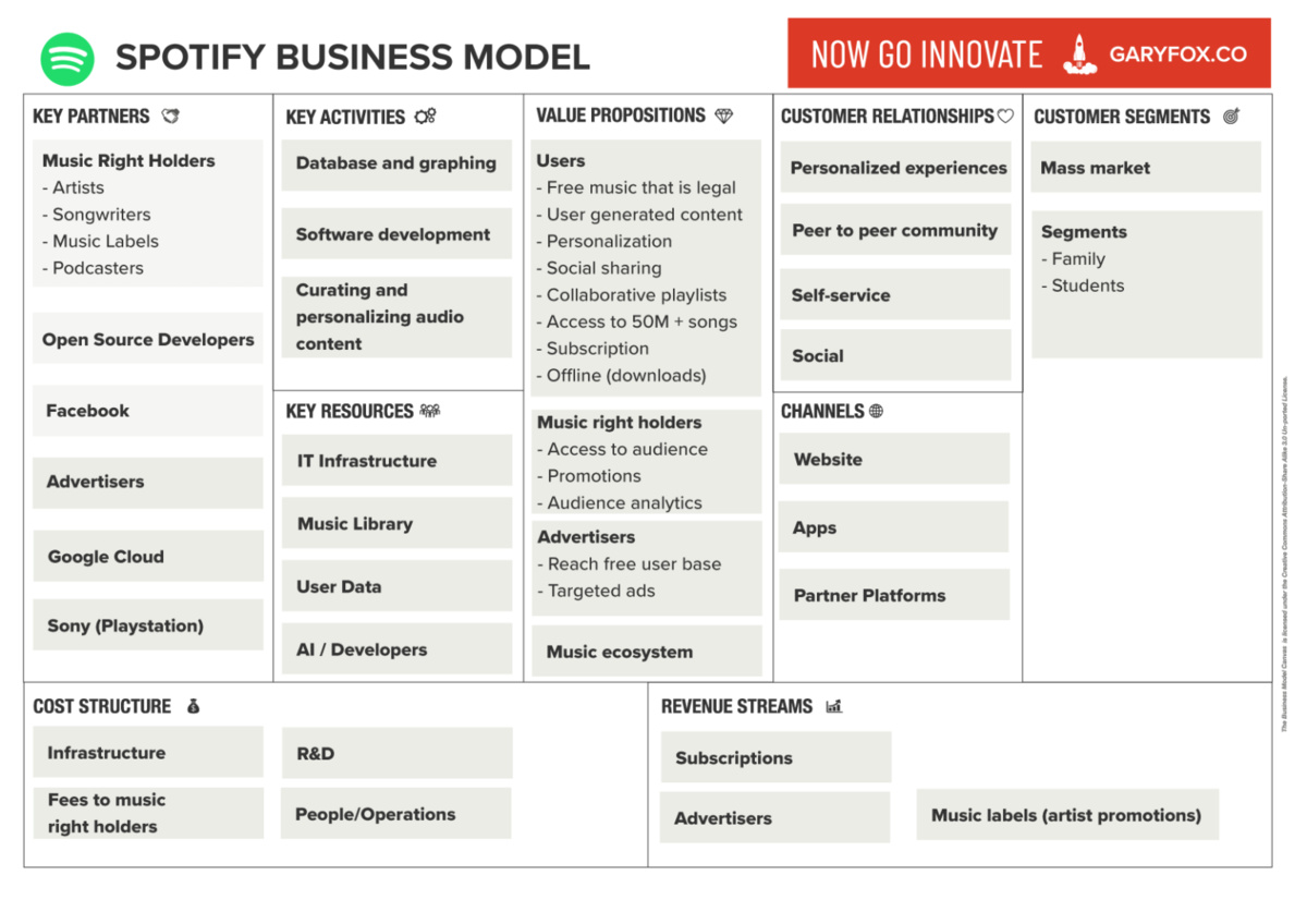 Voorbeeld Business Model Canvas Spotify - © garyfox.co