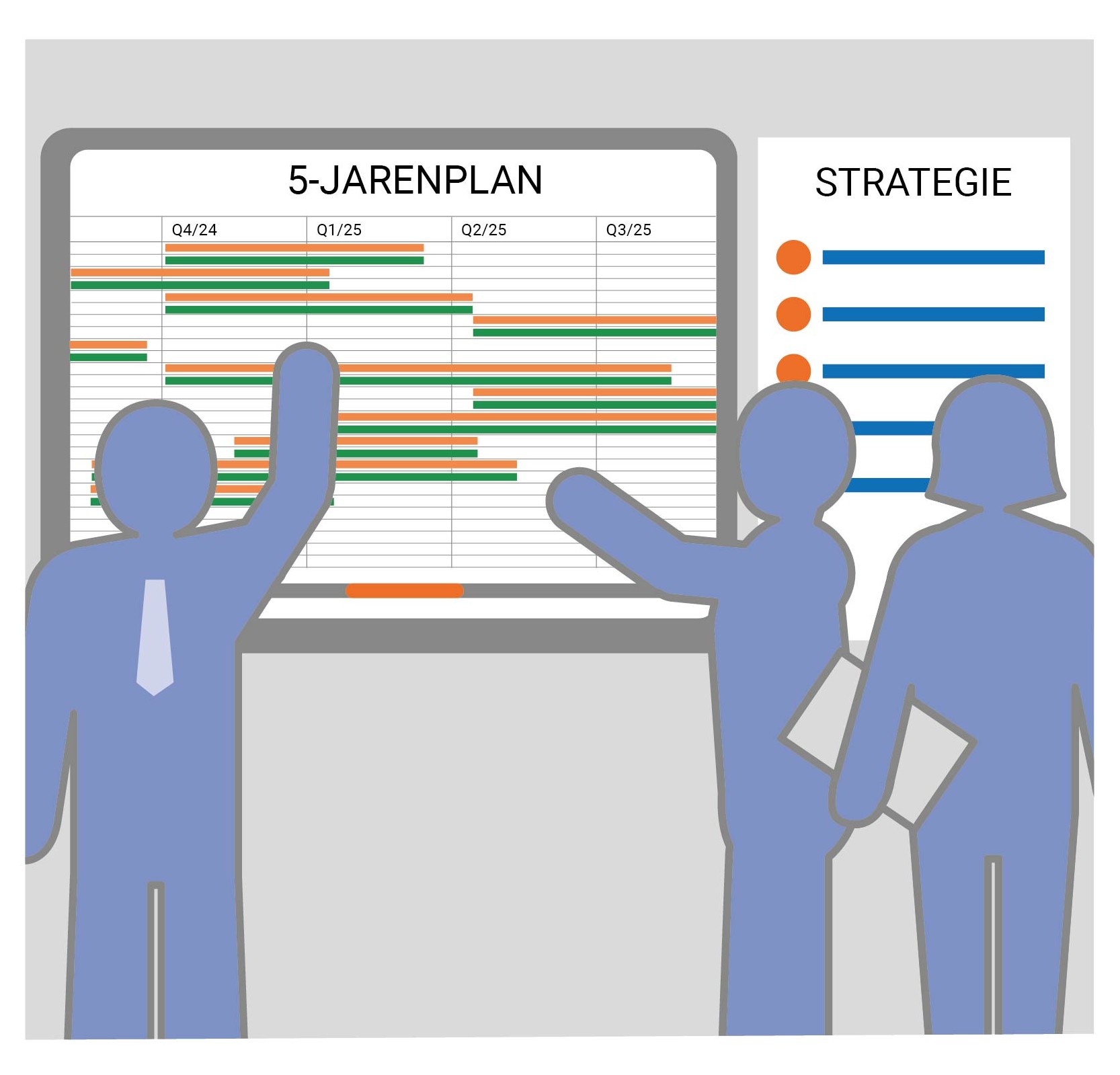 De 5 niveaus van planning bieden een gestructureerde manier om op elk niveau de juiste beslissingen te nemen en afstemming te creëren. Het zorgt voor overzicht, rust, efficiëntere bedrijfsvoering en betere resultaten. Zo versterkt je uiteindelijk je marktpositie.