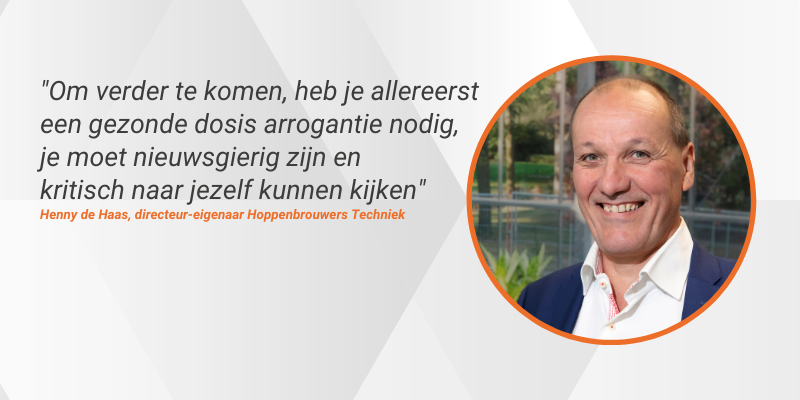 Henny de Haas, directeur-eigenaar Hoppenbrouwers Techniek, besloot het boerenerf te verlaten om elektricien te worden. Nu leidt hij een succesvol allround technisch bedrijf met ruim 1600 collega’s en duizenden klanten. Coach Marc Lammers gaat met hem in gesprek over zijn persoonlijke ontwikkeling, met name als ondernemer en leidinggevende.