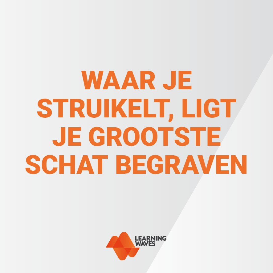 Dus…. Niks mis met struikelen. Mooier nog, struikelen levert je veel op. Op één voorwaarde… Dat je de schat die eronder ligt wel opgraaft natuurlijk!