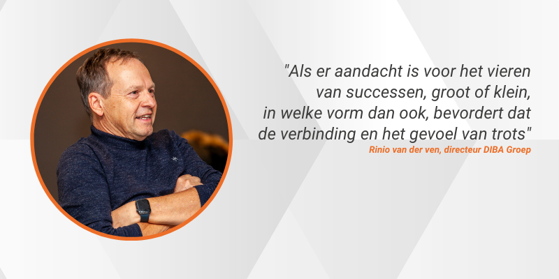 "We zijn nu een paar jaar verder en het wordt wel weer eens tijd voor iets groots. Dit keer iets anders dan een reisje naar het buitenland. Daar is uiteindelijk niet iedereen meegegaan, om diverse redenen. Ik vind het belangrijk dat het hele bedrijf erbij is. Als je het mooiste bedrijf wil zijn, dan moet iedereen in je bedrijf je het mooiste bedrijf vinden. Daarom wil je in de basis aandacht geven aan kleine persoonlijke successen naast teamsuccessen en het succes van de hele organisatie. Ik maak voor iedere collega een kleine persoonlijke vlog met zijn of haar verjaardag om te feliciteren en een compliment te geven over het werk. Ook laat ik de collega’s zelf over hun werk vertellen als ik klanten op bezoek heb, in plaats van dat ik over hun werk vertel. Zo geef ik hen het podium. En ik laat nooit een kans voorbij gaan om iemand een compliment te geven. Het wordt te vaak als vanzelfsprekend gezien dat iemand zijn werk goed doet. Als je aandacht hebt voor het vieren van grote en kleine momenten, in verschillende vormen, bevordert dat de verbinding en het gevoel van trots. Dat moet je niet af en toe doen, dat wil je elke dag doen.”